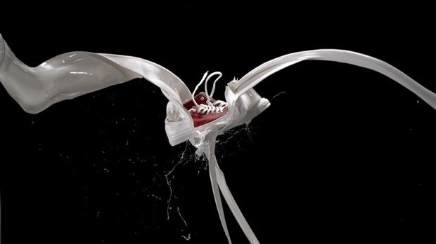 Die Converse Maison Martin Margiela Schuhe wurden komplett mit weißer Farbe von Hand bemalt, von den Ösen über die Schnürsenkel bis hin zur Sohle. Nach und nach bröckelt durch das Tragen diese weiße Farbe ab und der eigentlich Schuh kommt zum Vorschein! Eine schöne Idee, bei der jeder Schuh anders aussieht und sich natürlich immer wieder verändert!