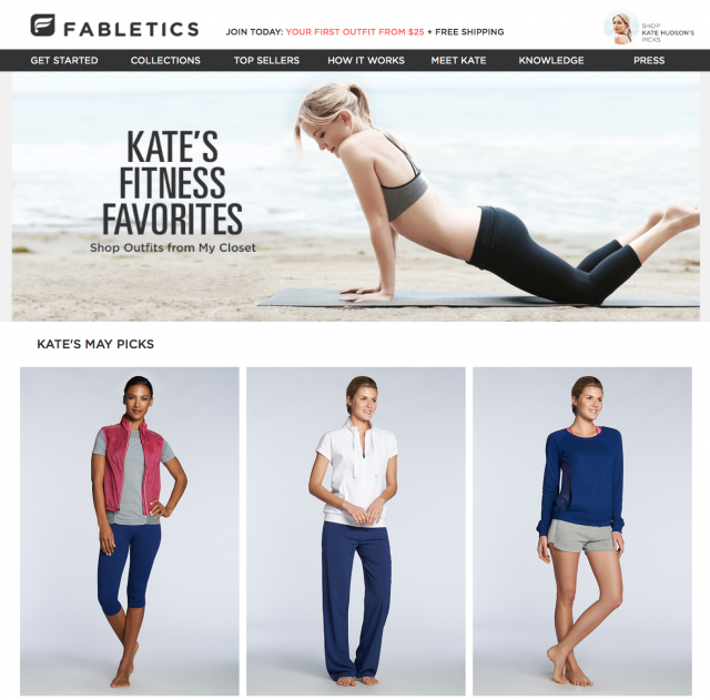 Die Schauspielerin hat gemeinsam mit dem Shoppingclub JustFab das neue Sportlabel Fabletics gegründet. Der US-amerikanische online Schuh- & Taschenshop und Kate Hudson setzen auf hochqualitative Sportmode für Damen.