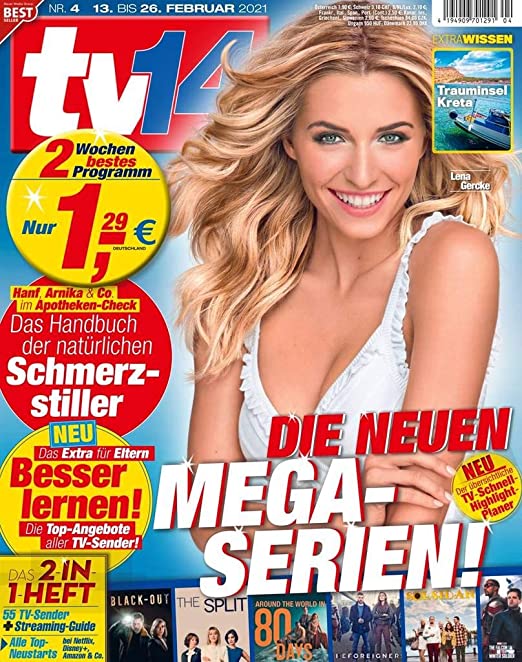 Die TV14 ist Deutschlands größte Programmzeitschrift. Die TV14 wird auch in Europa vertrieben und erfreut sich auch dort einer hohen Nachfrage. Die TV14 erscheint 14-tägig und besitzt aktuell eine Auflage von 2,5 Millionen Exemplare. Die TV14 kann in zahlreichen Zeitungsläden und Kiosks erworben werden. Die TV14 bietet nicht nur eine objektive Berichterstattung, die TV 14 ist auch bereits für einen Euro erhältlich.