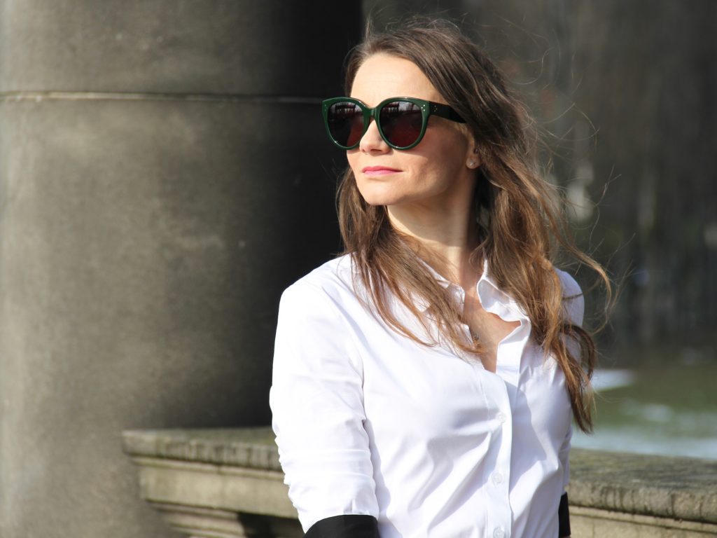Für diesen Tag habe ich einen komplett monochromen Look gewählt und mit der Audrey von Céline kombiniert. Die übergroße Cateye Sonnenbrille hat es in den letzten Jahren zum Klassiker geschafft und steht ähnlich mancher Handtasche auf vielen, vielen Wunschlisten (Ihr Männer da draußen dürft euch an dieser Stelle ruhig eine kurze Notiz machen!). Die Sonnenbrille habe ich wegen meines hellen Teints in grün, dass wirkt weicher und harmonischer.