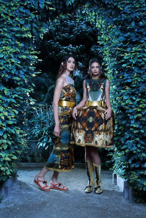Heimatverbunden inszenierte die Printverliebte Österreicherin Ruétz Motive von verschiedensten Gemälden des Schlosses Ambras in Innsbruck in dieser Kollektion. Ob flächig, verzerrt oder durch Cut-outs zerteilt dominierten die prächtigen Rokokomotive und opulenten Blumenmuster das Gesamtbild mit prachtvollen, mystischen Tönen.