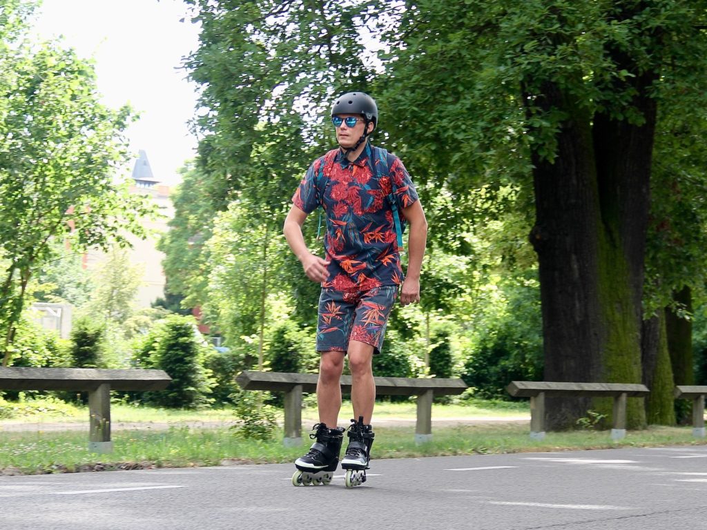 Ich habe daher auch ein Outfit für meinen Skate-Ausflug gewählt das nicht hardcore-performancemäßig aussieht, sondern mit dem großflächigen Palmen-Print auch meine „let it roll“ Einstellung unterstreicht. Natürlich kann man mit den K2 Uptown auch ordentlich schnell fahren, aber für mich standen andere Details im Vordergrund. Wie schon gesagt ist das Design wie bei einem Ledersneaker gearbeitet und dementsprechend bequem sind die Skates auch im Trageefühl. Durch die Kombination aus Schnürung, Klettverschluss und Spannverschluss hat man aber trotzdem perfekten Halt im Schuh.