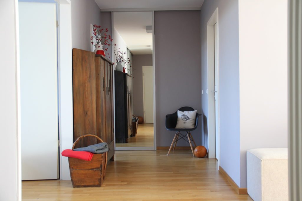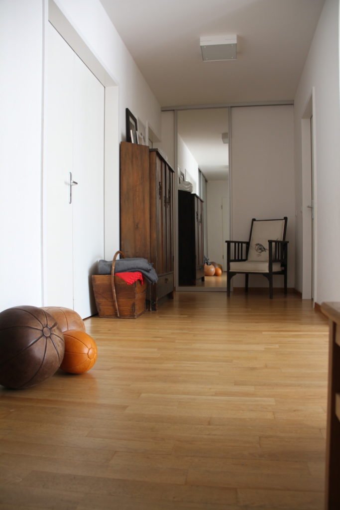Meinen Flur habe ich bisher ziemlich stiefmütterlich behandelt. Meistens beginnt man bei der Einrichtung mit den wichtigen Räumen wie Wohnzimmer, Schlafzimmer etc. und am Ende gehen einem dann die Ideen aus. In meinem Flur sind alle nur auf Durchreise, von Tür zu Tür, hinein, heraus, hindurch. Und irgendwie scheint nirgends Platz zu sein für schöne Möbel oder Bilder, weil alles rein funktional seinen Zweck erfüllt – Garderobe, Sitzbank, Schrank.