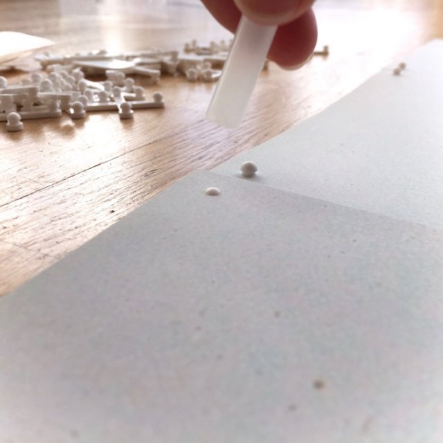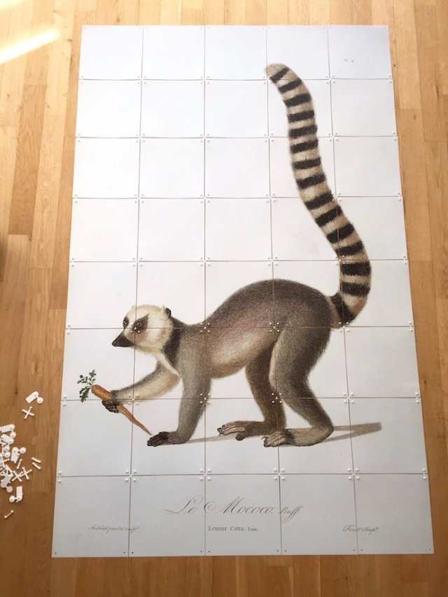 Die Montage ist schnell erledigt. Bildkarten nach Anleitung ausbreiten, mit den Verbindungskreuzen fixieren und an die Wand bringen. Zur Befestigung genügt es hochwertige Posterstrips zu verwenden. Für mich die ideale Lösung um diese große leere Fläche ohne Löcher in der Wand zu gestalten.