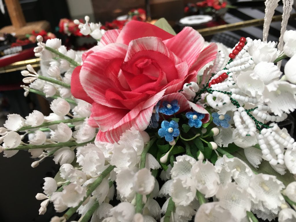 Gekrönt von den filigranen Blütenträumen der Wiener Designerin Niki Osl umflatterten lange Bänder die zu lockeren Zöpfen gesteckten Haare der Models. Üppiger marokkanischer Schmuck umspielte die Hüften und an den Füßen trugen sie eigens von Lena Hoschek entworfene Schuhe allesamt leuchtend rot.