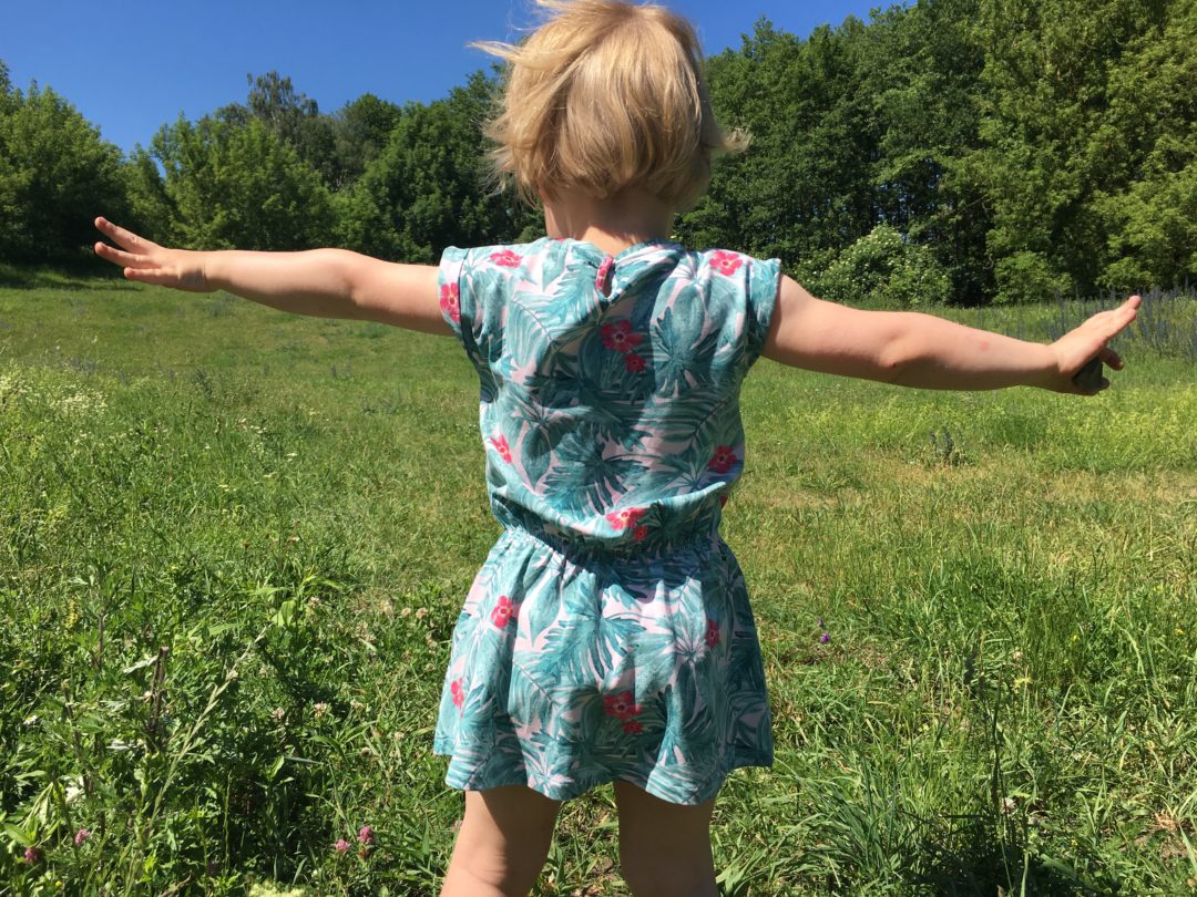 Keine fünf Minuten später wollten die Schuhe samt Kind plötzlich doch an die frische Luft. Für den Fall das wir Gaston treffen, hat Fräulein Dickkopf extra die Sandalen mit den hübschen Blümchen angezogen. Die mag er nämlich sehr und Blumen auf dem Kleid natürlich auch.