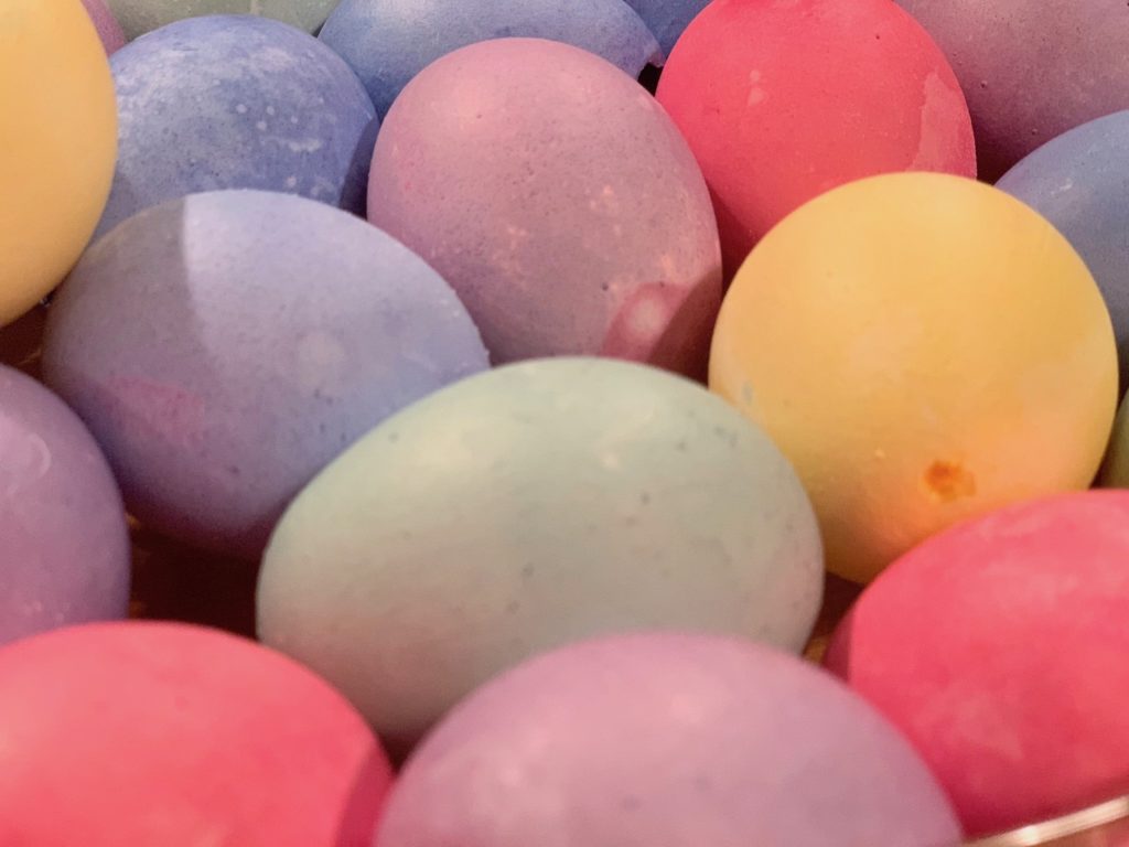 Für eine farbenfrohe Ansteckung bekommen ausgeblasene Eier mit klassischen Kaltfarben den gewünschten Grundton. Persönliche Vorlieben gehen hier vor wissenschaftlicher Genauigkeit. In den Medien tanzt das Virus schließlich auch vom klassisch kleinen Schwarzen bis hin zur ganzen Regenbogenpalette über den Bildschirm.