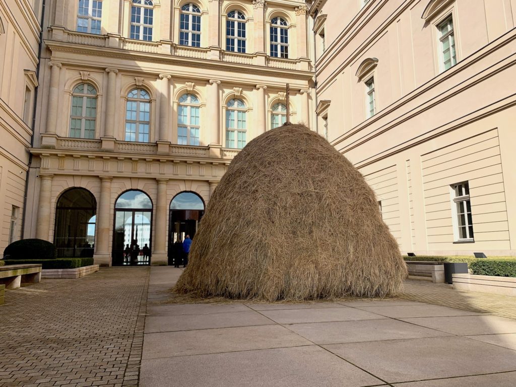 Der Moment des meditativ visuellen Kurzurlaubs wird durch die völlig reale Existenz eines imposanten Heuhaufens im Hof des Museums unterstützt. Bekanntermaßen zählten die Giganten zu Monets Lieblingsmotiven. Pünktlich zum Beginn der Ausstellung wurde das naturalistische Werk eines unbekannten Künstlers aus der französichen spreewälder Provinz eingekauft. Nach dem Regen der vergangen Tage dürfte er auch olfaktorisch ein Erlebnis sein.