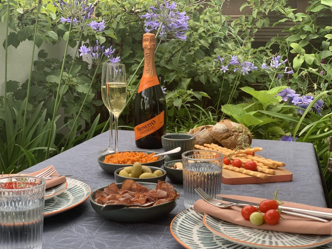 Noch schöner ist es natürlich, wenn man sich beim herrlichen Sommerwetter seine eigene kleine Auszeit kreiert mit einem stilechten Prosecco-Brunch. Sonnenschirm auf und Grissini, Schinken, Oliven, Ciabatta und natürlich original Prosecco – so kann man sich für einen Moment wie in Italien fühlen.