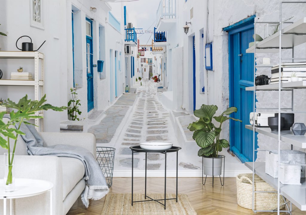 Blau und Weiß – die strahlend weiß verputzten Häuser mit ihren leuchtend blau gestrichenen Fensterläden sind ein Sinnbild für die griechische Lebensart. Der ursprüngliche Charme der griechischen Mittelmeerinseln macht sich auch zu Hause gut. Das klappt nicht nur mit der typischen Farbgebung, sondern auch mit den passenden Accessoires: Vasen in klassisch griechischer Säulenform, Wandspiegel in Fischform, Übertöpfe, die an Amphoren erinnern, so wird die Antike modern interpretiert. Auf den Esstisch kommen Wassergläser in Aqua-Tönen und schlichtes Keramikgeschirr. Kombiniert mit schlichten Holzstühlen mit einer Sitzfläche aus Bast gleicht der Esstisch dem in einer griechischen Taverne. Kleine Windlichter mit Netzüberzug und filigrane Leuchten, die an Reusen erinnern, zaubern charmante Lichtstimmungen. Schnelle Deko-Idee: Deko-Sand – erhältlich im Bastelbedarf – in ein Vorrats- oder Weckglas füllen und Muscheln darauf setzen, fertig ist der Look im Inselfeeling.