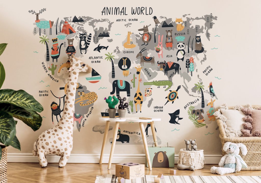 Unsere Kleinen haben von Natur aus einen unbändigen Entdeckergeist. Mit Neugier und Leidenschaft erleben Kinderaugen die Welt. Warum nicht ihre Fantasie in den eigenen vier Wänden einen kleinen Anstoß geben. Hierzu können zum Beispiel kindgerechte Weltkarten auf Fototapeten und thematisch passende Leinwandbilder verwendet werden. Spielzeug und Bücherregale an sich sind sehr bunt, mit großen Körben, Boxen und Kisten können auch Kinder Ordnung leicht für sorgen. Ein ruhiges Farbschema hilft bei der Einrichtung einem Konzept treu zu bleiben. Sorgfältig ausgewählte Töne auf Teppichen, Gardinen und Bettwäsche beruhigen die Raumwirkung und schaffen eine harmonische Spiel- und Lernumgebung.