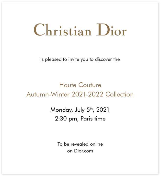 Mit nur einem Mausklick könnt ihr euch die exklusive Online-Präsentation der HAUTE COUTURE Herbst-Winter 2021-2022 Kollektion der Damen zeigen lassen und Inspiration sammeln. Hier geht es direkt zur Dior Fashion Show.